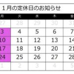 1日(月曜日)8日(月曜日)15日(月曜日)21日(第三日曜日)22日(月曜日)29日(月曜日)