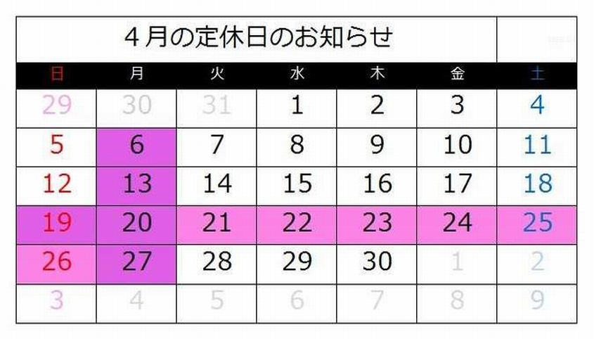 【4月の定休日】